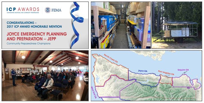 The small unincorporated community of Joyce is located on the northern edge of Washington State's Olympic Peninsula, in Clallam County, about 15 miles west of the city of Port Angeles. The Joyce Emergency Planning and Preparation Group (JEPP) is a subcommittee of the Joyce Fire Auxiliary, a 501(c)(3) non profit organization. JEPP was formed in 2016 to support the mission of the Joyce Fire Auxiliary which is “to promote the ability of Clallam County Fire Protection District No. 4 to provide effective and efficient service in response to man-made or natural disasters.” The JEPP Group’s vision is a disaster ready and resilient Joyce and its mission is to prepare the small community to cope with large scale disasters, including a major CSZ earthquake.